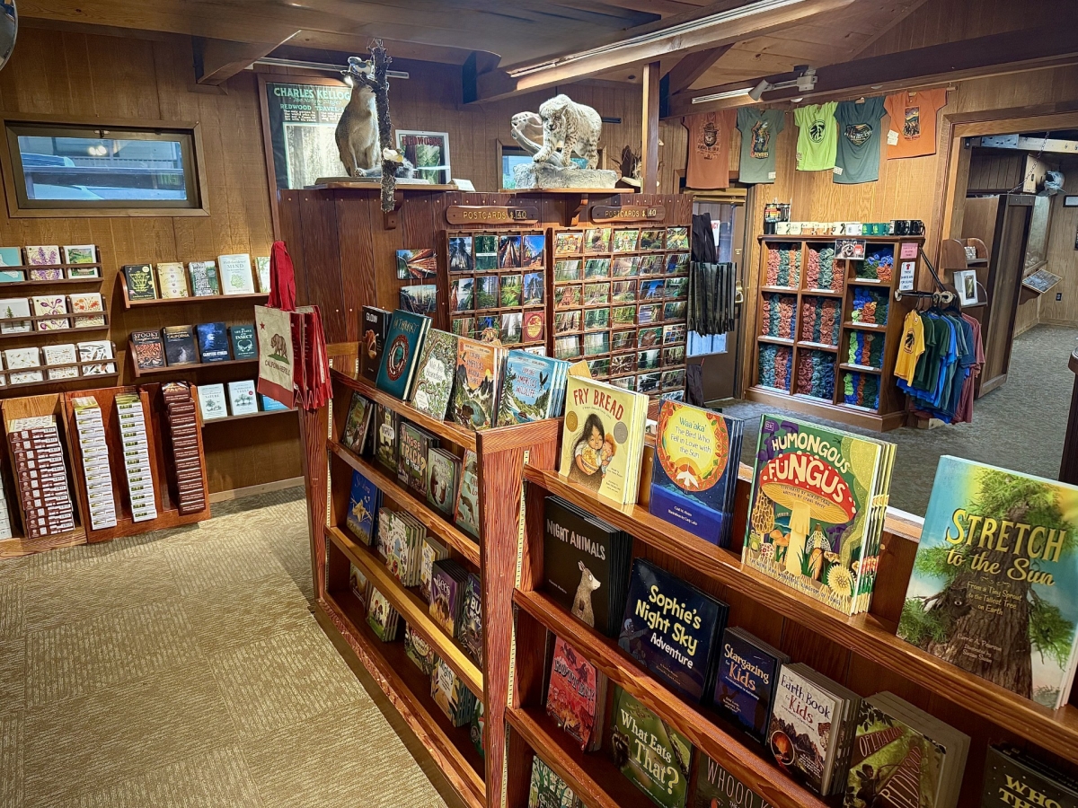 The Visitor Center is operated by the Humboldt Redwoods Interpretive Association, and all proceeds benefit efforts to expand the educational and outreach goals of the park. There are numerous visual and hands on educational exhibits, a theater, a library, gift shop, and a friendly volunteer staff to answer questions about the park and area. The Visitor Center is closed on Thanksgiving and Christmas Day.